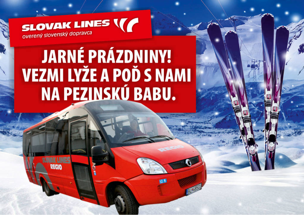 Pre tých čo neodchádzajú na jarné prázdniny do iných lyžiarskych stredísk budú môcť využiť posilnené autobusy od Slovak Lines na Pezinskú Babu ak budú vleky v prevádzke, v čo dúfame aj my.