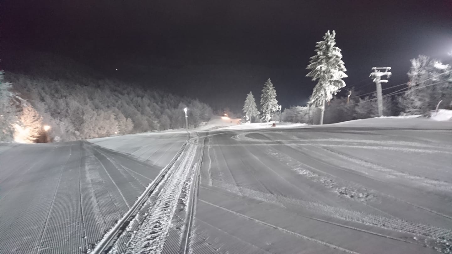 Na Pezinskej Babe dňa 21.12.2018 o 7:00, teplota -4,8°C, oblačno, hmla. Včera napadlo do 4 cm čerstvého snehu. Dnes v prevádzke kotvový vlek DOUBLE od 9:00 do 16:00 a večerné lyžovanie od 17:00 do 21:00. Na svahu pri vleku DOUBLE je 20 cm technického a prírodného snehu. Svah bol včera večer upravený.