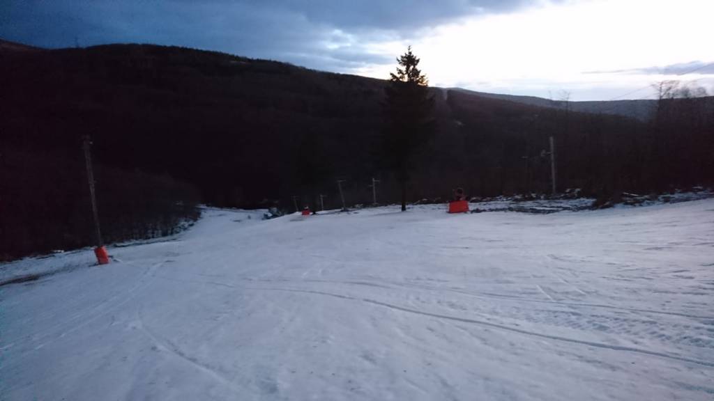 Pohľad na svah pri vleku DOUBLE 23.12.2018 o 9:50 po včerajšom extrémnom oteplení a daždi.