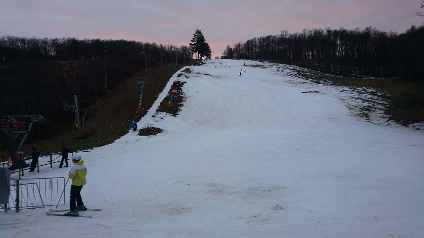 Na Pezinskej Babe dňa 29.12.2018 o 7:00, teplota 1,4°C, oblačno. Dnes bude v prevádzke kotvový vlek DOUBLE od 9:00 do 16:00. Večerné lyžovanie nie je. Na svahu pri vleku DOUBLE je priemerne 15 cm technického snehu.