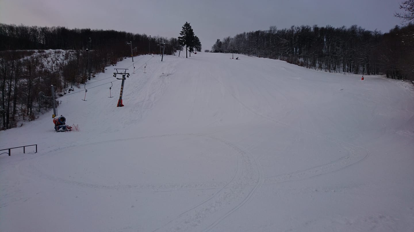 Na Pezinskej Babe dňa 10.1.2019 o 7:00, teplota -1,6°C, oblačno. Výška prírodného snehu je okolo 40 cm. Dnes je v prevádzke kotvový vlek DOUBLE a v prípade potreby aj POMA H-60 od 9:00 do 16:00 a večerné lyžovanie na svahu pri vleku DOUBLE od 17:00 do 21:00. Na svahu pri vleku DOUBLE je do 40 cm technického a prírodného snehu, na ostatných svahoch je len prírodný sneh do 20 cm. Svah pri vleku DOUBLE bol včera večer upravený.
