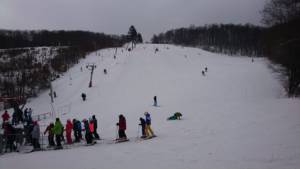 Pohľad na svah pri vleku DOUBLE 27.1.2019 o 9:30. Chvíľu sa ukázalo aj slnko.