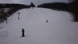 Pohľad na svah pri vleku DOUBLE 11.2.2019 o 9:35. Aj napriek vyššej teplote, svah je mierne prituhnutý.