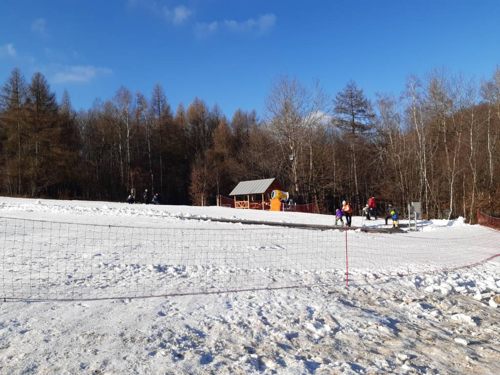 Dnes bude v stredisku Zochova chata v prevádzke dopravníkový pás SunKid30 od 9:00 do 16:00 aspoň pre tie najmenšie deti. V okolí pásu je upravený technický sneh do 20 cm. Ostatné svahy sú zatiaľ bez snehu. Obrázok zo Zochovej chaty dňa 1.1.2020.