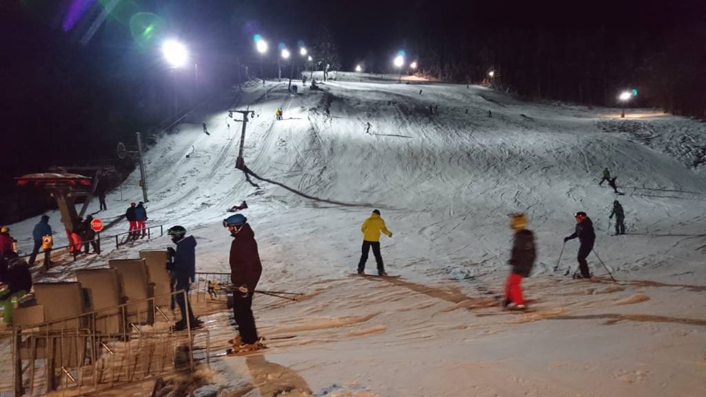 Pohľad zdola na svah pri vleku DOUBLE 29.1.2020 o 18:30.