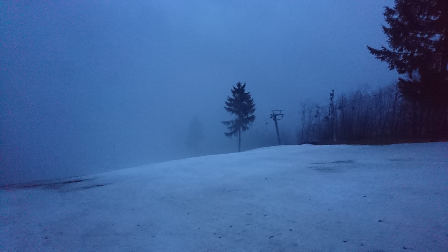 Pohľad na svah pri vleku DOUBLE 4.2.2020 o 7:00.