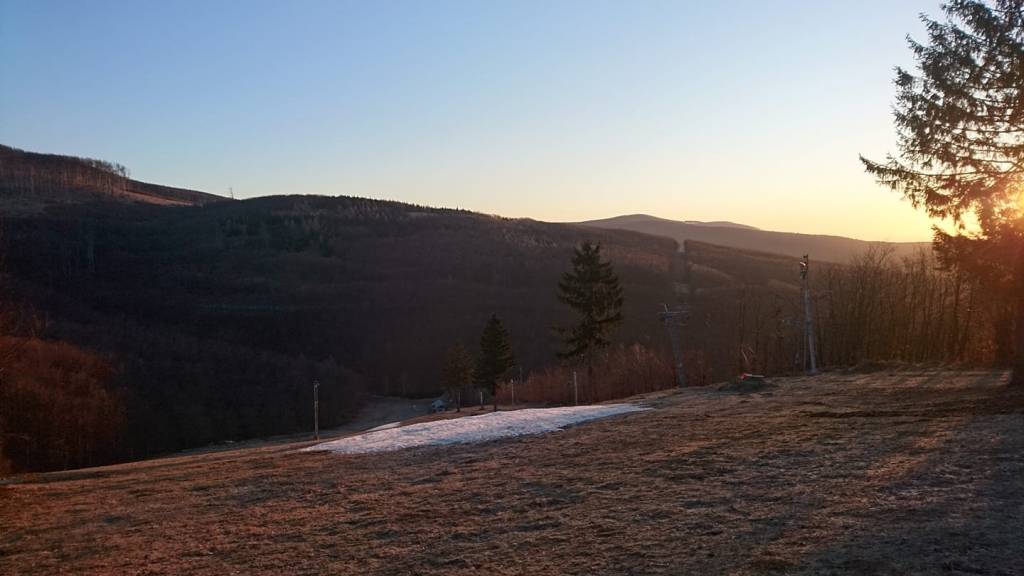 Pohľad na svah pri vleku DOUBLE na Pezinskej Babe 5.3.2020 o 6:40.