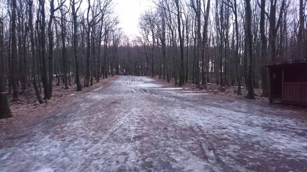 Aktuálne počasie na Pezinskej Babe 30.1.2021 o 7:30, teplota 4,2 °C, polooblačno. Po včerajšom silnom daždi zostali v lese len nesúvislé zvyšky prírodného snehu. Pôvodný utlačený sneh sa zmenil na šmykľavé ľadové plochy.