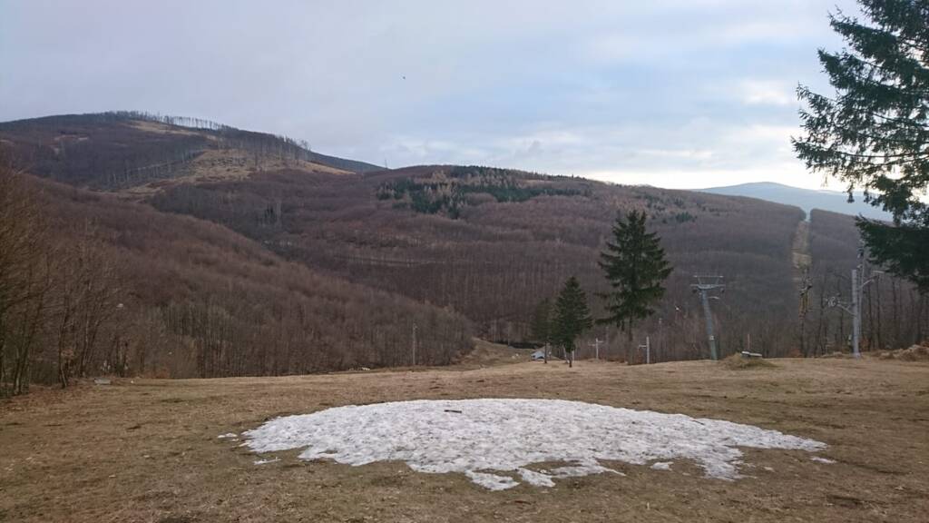 Aktuálne počasie na Pezinskej Babe 15.3.2021 o 7:10, teplota -0,4°C, oblačno. Po včerajších prehánkach prišlo ochladenie a ráno bola teplota mierne pod nulou. Na zjazdovke sú posledné zvyšky technického snehu.