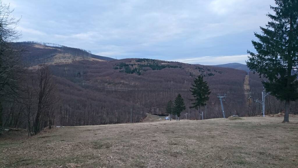 Aktuálne počasie na Pezinskej Babe 30.3.2021 o 7:30, oblačno. Už sa roztopili aj posledné zvyšky technického snehu.