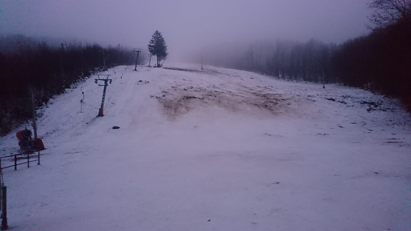 Obrázok z Pezinskej Baby dňa 16.12.2021 o 7:20. Pohľad na svah pri vleku DOUBLE.