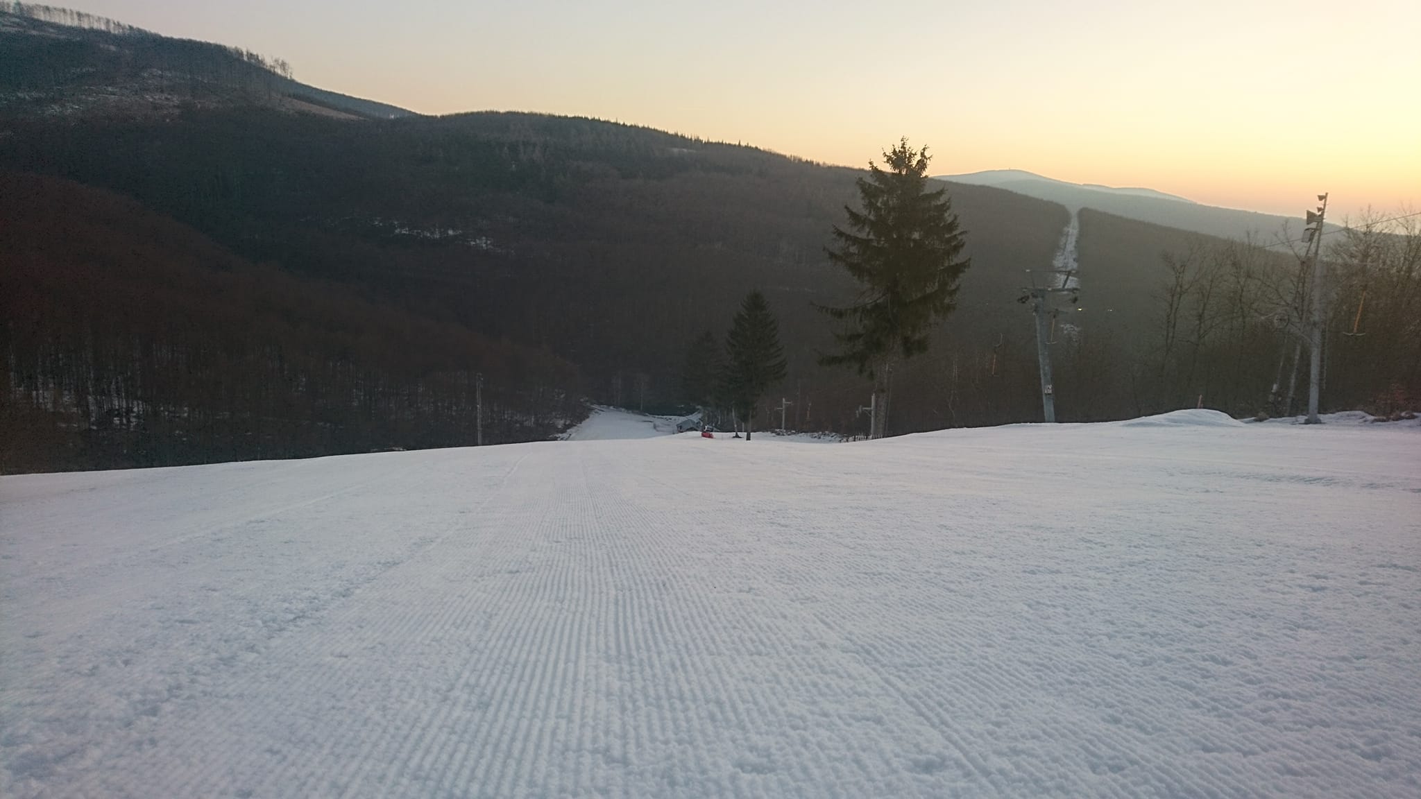 Aktuálne počasie 15.2.2023 na Pezinskej Babe o 6:55, teplota -1,6°C, takmer jasno. Dnes bude v prevádzke kotvový vlek DOUBLE od 9:00 do 16:00 a večerné lyžovanie od 17:00 do 21:00. Na svahu je od 10 do 30 cm technického a prírodného snehu. Svah bol včera večer upravený. Ráno je povrch stuhnutý.
