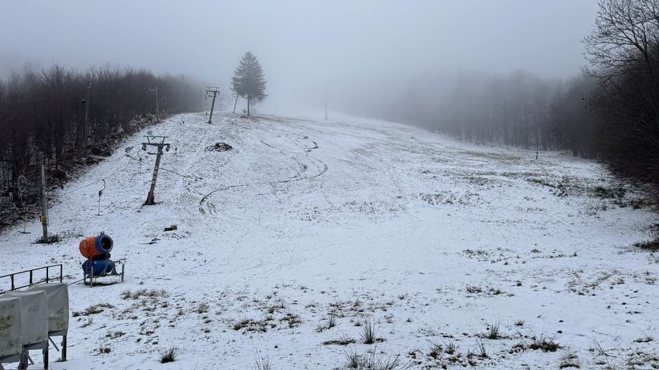 Aktuálne počasie na Pezinskej Babe 7.12.2024 o 8:00, teplota 1,9°C, hmla, mrholenie. Po včerajšom snežení prišlo oteplenie, čo sa prejavilo aj na kvalite a množstve snehu.