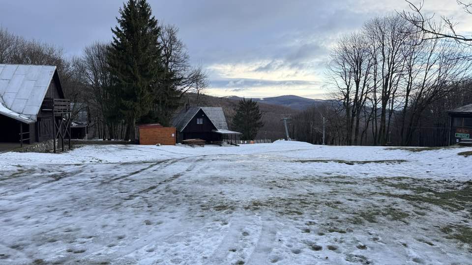 Aktuálne počasie na Pezinskej Babe 16.12.2024 o 11:30, teplota 4,6°C, oblačno. Predpovedané oteplenie skutočne prišlo aj keď včera ráno trošku posnežilo. Prírodný sneh sa takmer všetok roztopil aj vo vyšších polohách. Pre nedostatok snehu vleky nie sú v prevádzke, ani bežkovať sa nedá.