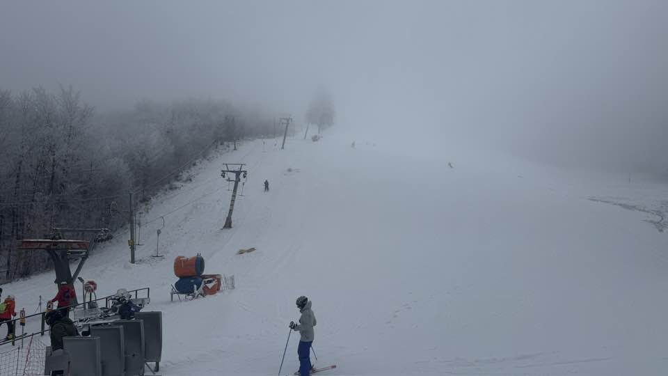 Aktuálne počasie na Pezinskej Babe 20.1.2025 o 15:30, teplota -4,6°C, oblačno, hmla. Rovnaké počasie sa udržuje celý deň. Dnes je ešte večerné lyžovanie od 17:00 do 21:00. Na svahu pri vleku DOUBLE je od 20 do 30 cm technického a prírodného snehu. Počas dňa sme technicky zasnežovali pri vleku DOUBLE. Svah sa dnes nebude upravovať pred večerným lyžovaním pre poruchu ratraku.