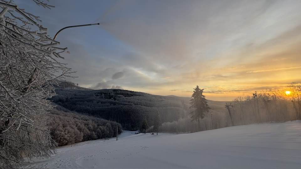 Aktuálne počasie na Pezinskej Babe 14.2.2025 o 7:00, teplota -2,6°C, polooblačno. Včera napadlo do 2 cm vlhkého snehu, celková výška prírodného snehu nepresahuje 5 cm. Vplyvom hmly a mrholenia sa vrstva námrazy sa včera ešte zväčšila. Dnes je v prevádzke vlek DOUBLE od 9:00 do 16:00 a večerné lyžovanie od 17:00 do 21:00. Na svahu pri vleku DOUBLE je od 20 do 40 cm technického a prírodného snehu. Svah pri vleku DOUBLE bol včera večer upravený.