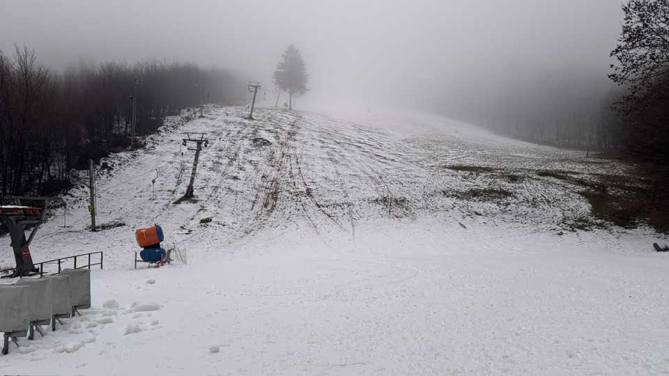 Aktuálne počasie na Pezinskej Babe dňa 1.12.2025 o 7:30, teplota -0,2°C, hmla. S ohľadom na terajší charakter počasia sme technické zasnežovanie prerušili. Celková výška snehu je do 10 cm v závislosti od nadmorskej výšky. V miestach kde sa udržuje hmla je povrch snehu mierne zamrznutý, na ostatných miestach sa sneh topí.