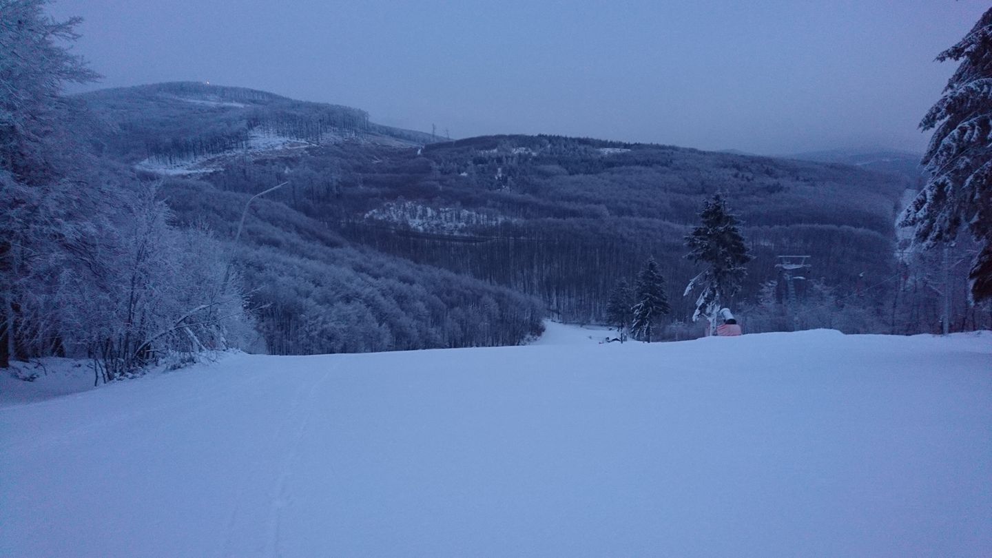 Current weather 18.2.2018 O 7:00, -1,8°C, cloudy. From yesterday, it occurred to 3 cm of fresh snow. Today will operate DOUBLE T-bar lift and, if necessary, POMA H-60 from 9:00 do 16:00 and night skiing from 17:00 do 21:00. On a slope with ski lift DOUBLE from 15 do 30 cm technical and natural snow. On the other slopes is only natural untreated snow in 20 cm. DOUBLE slope near the lift was last night and this morning modified.