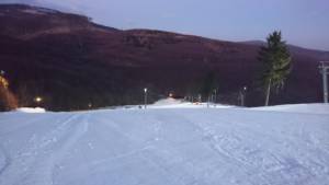 View of the slope near the lift DOUBLE 22.2.2019 O 17:45. Temperature -1.8 ° C. Night skiing today up 21:00.