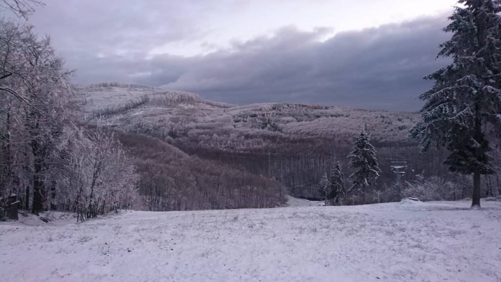 To this morning, the first natural snow this winter season has fallen in a total height of approximately 4 cm. Current weather in Pezinská Babe 30.11.2020 O 7:00, Temperature -2.1 ° C, cloudy. View of the slope near the lift DOUBLE 30.11.2020 O 7:00.