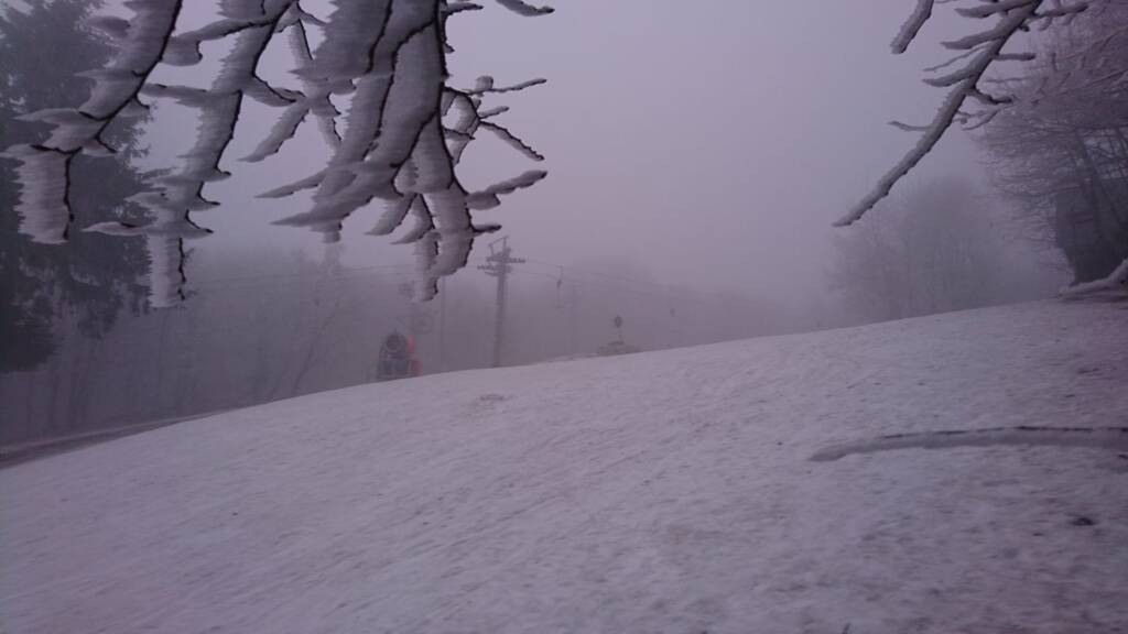 Current weather in Pezinská Babe 3.2.2021 O 7:20, temperature -1,2 °C, cloudy, fog. Frost and icing formed during fog and light frost. The suppressed original snow mostly turned to ice. Only discontinuous remnants of snow remained in the forest.