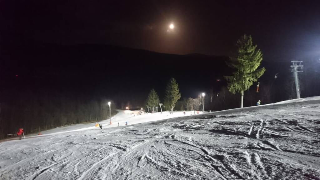 After yesterday's outage, today evening skiing is still until 21:00. Current temperature on 18:00 -1,6°C almost clear.