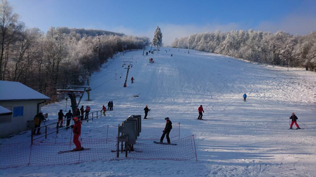 Today there is beautiful winter weather on Pezinská Baba. View from below of the slope at the DOUBLE o. lift 9:30. Today there is still operation until 16:00.