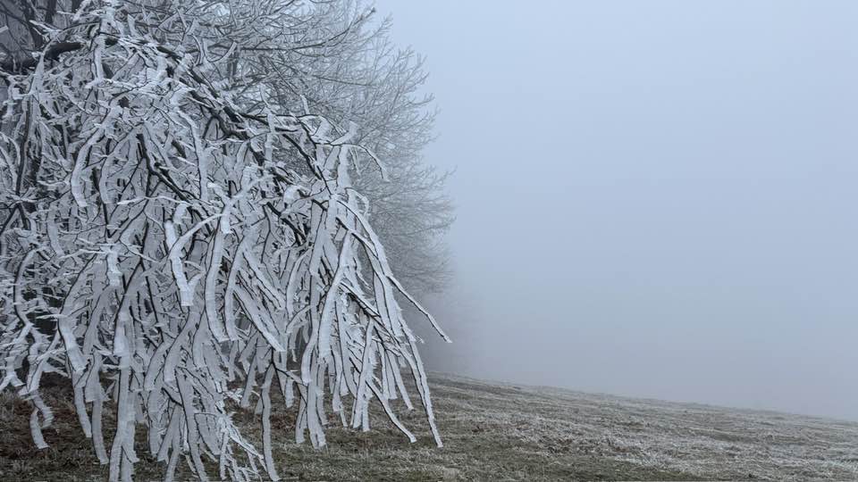Current weather on Pezinská Baba today 15.12.2025 O 8:30, Temperature -1.9 ° C, fog, drizzle. The return of fog and temperatures slightly below zero caused the formation of icy frost.